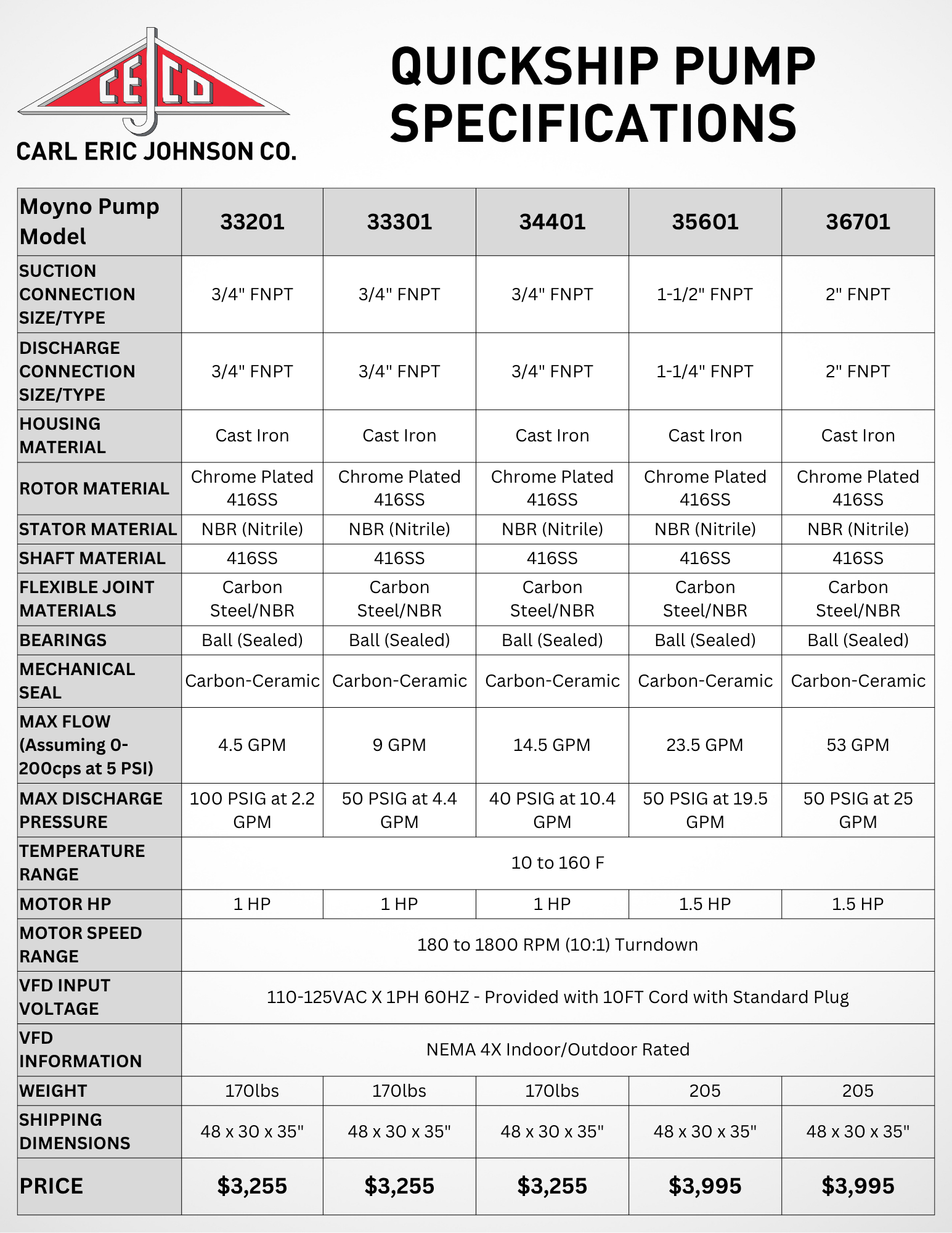 The Moyno 36701 (a 500 series pump) with Lenze VFD and motor on baseplate is a complete, fabricated pumping solution engineered for heavy-duty metering and transfer applications. Part of our Quick Ship program, this package ships within two business days of purchase order placement.